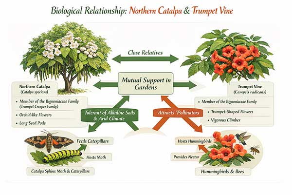 Catalpa trees have an interesting relationship with the Catalpa Sphinx Moth. Their caterpillars, called Catalpa worms, are sought out by anglers because they are tough and stay active on hooks. Large infestations of these caterpillars can defoliate a tree, but these hardy trees recover quickly by producing new leaves.